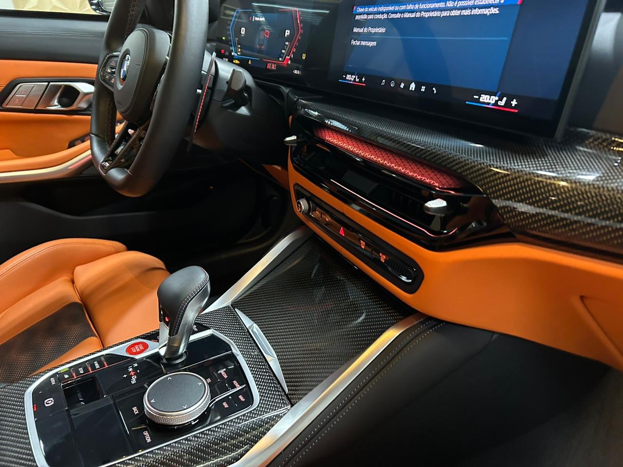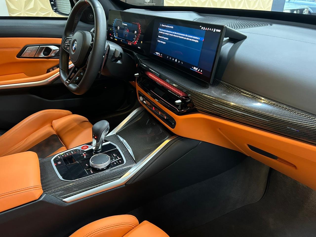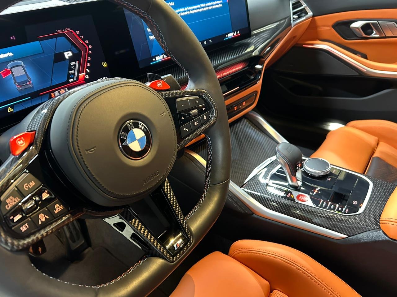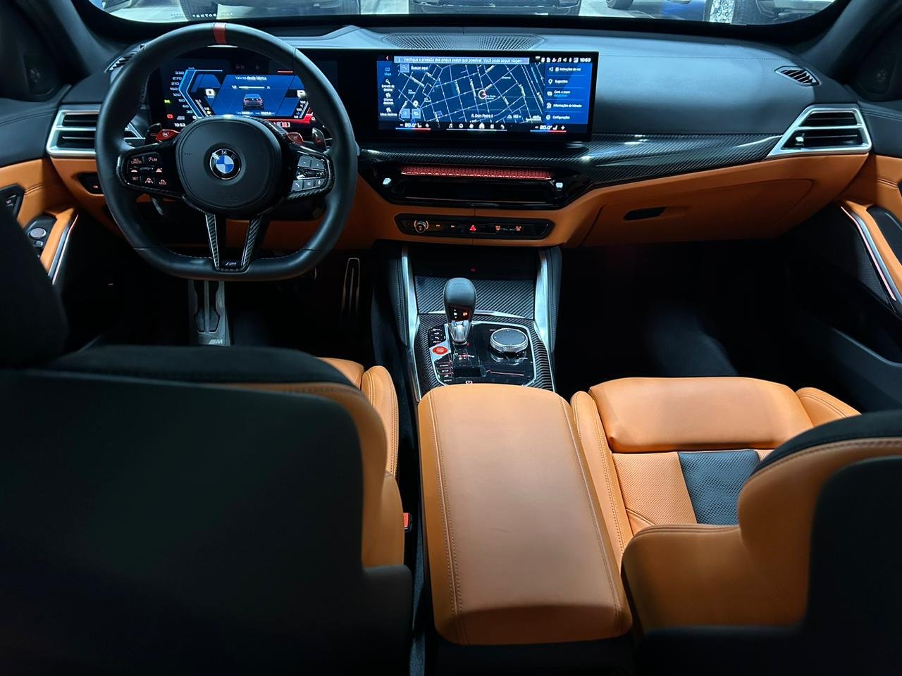 - Bancos em couro laranja e preto, dianteiros elétricos e motorista com memória com logo M3
