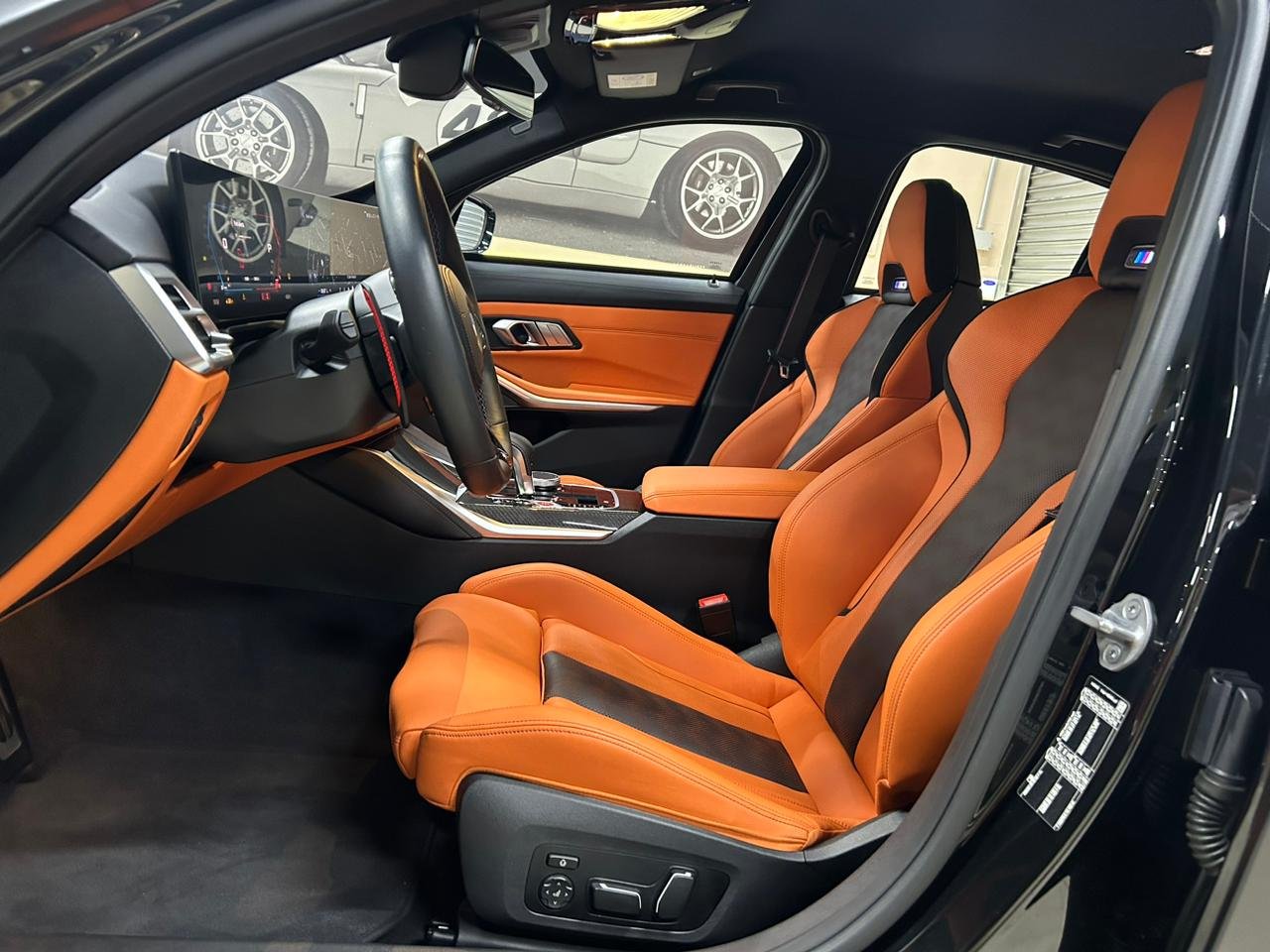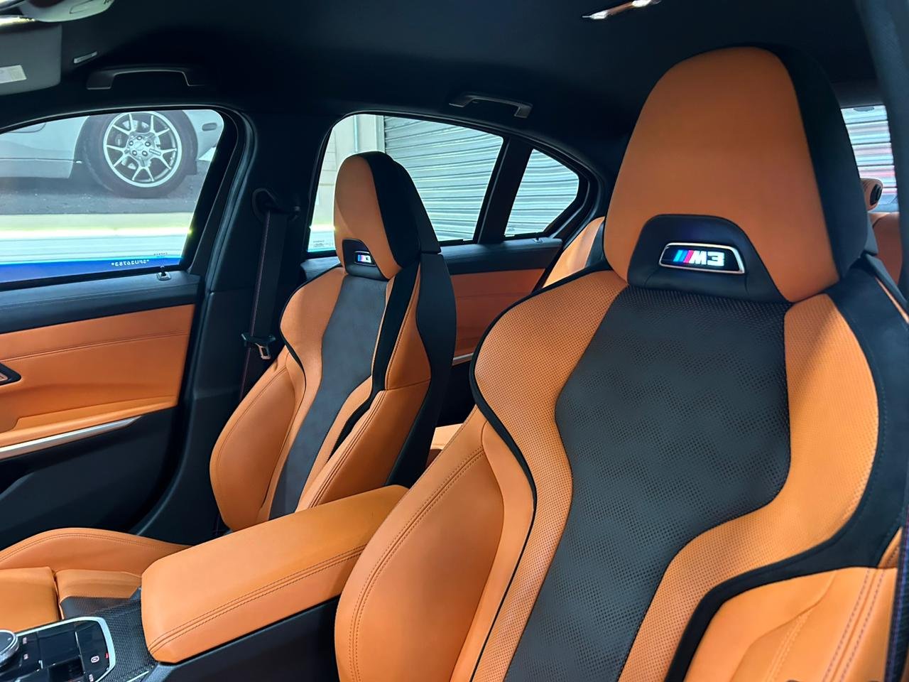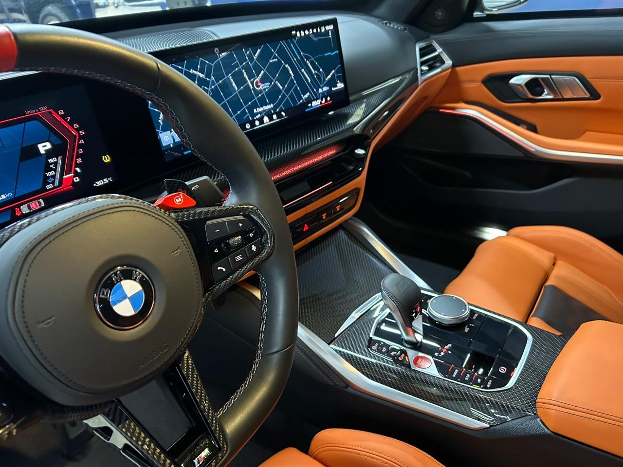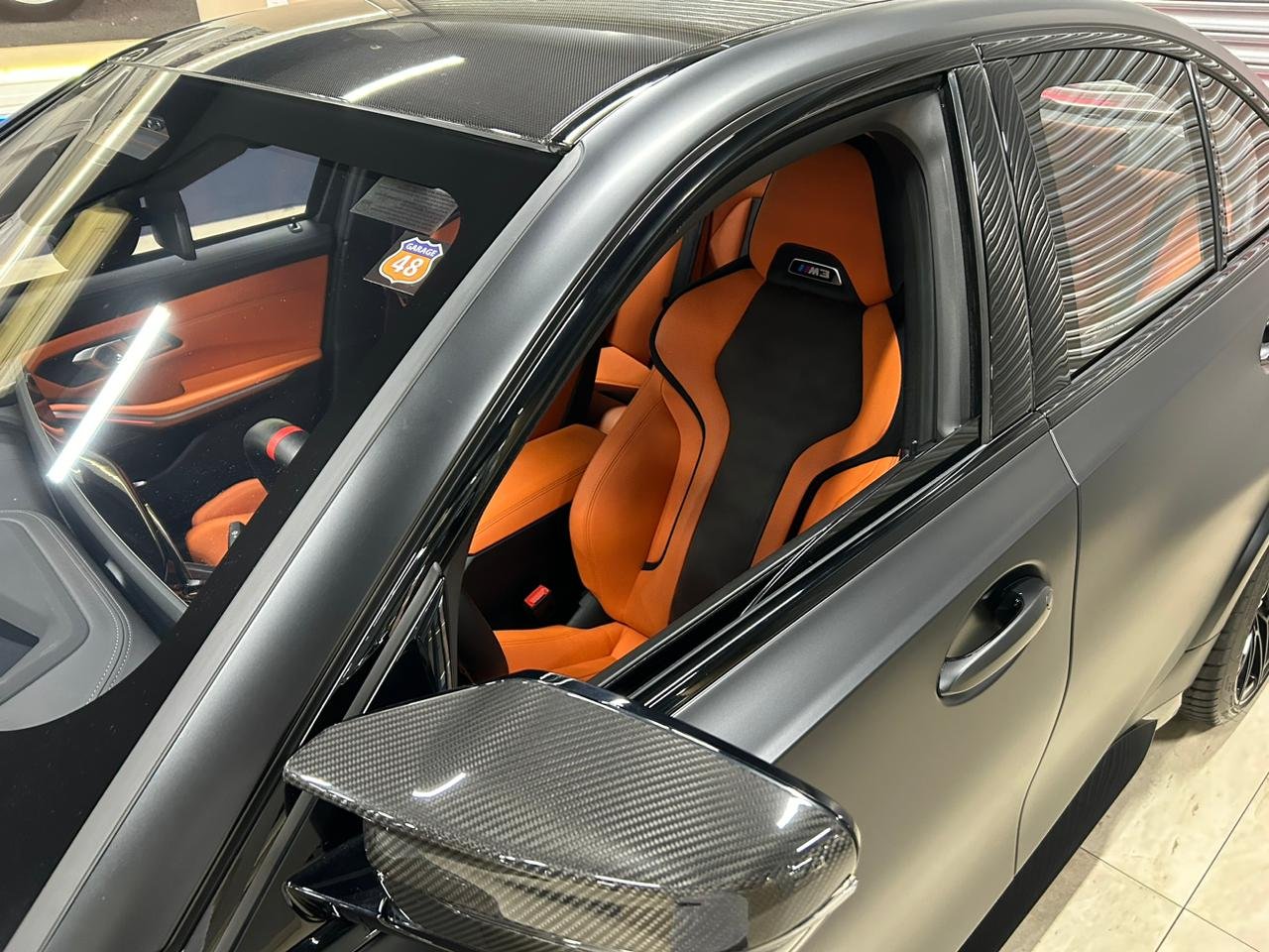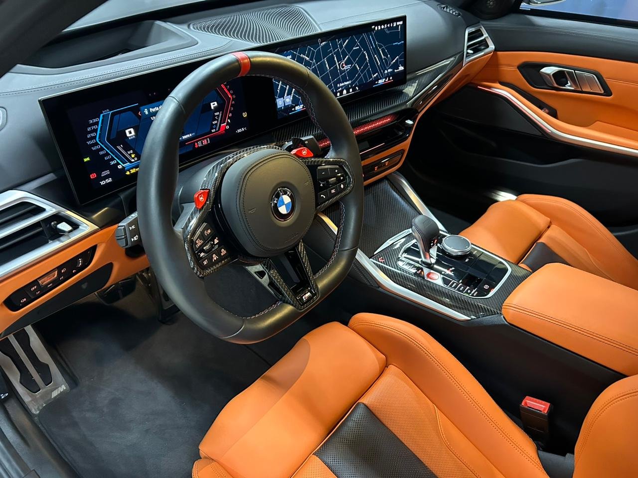 - Bancos em couro laranja e preto, dianteiros elétricos e motorista com memória com logo M3