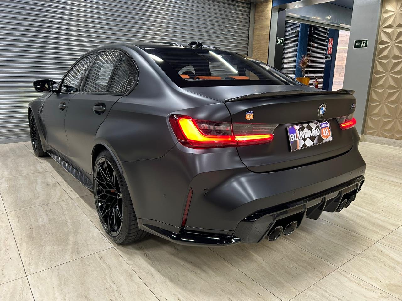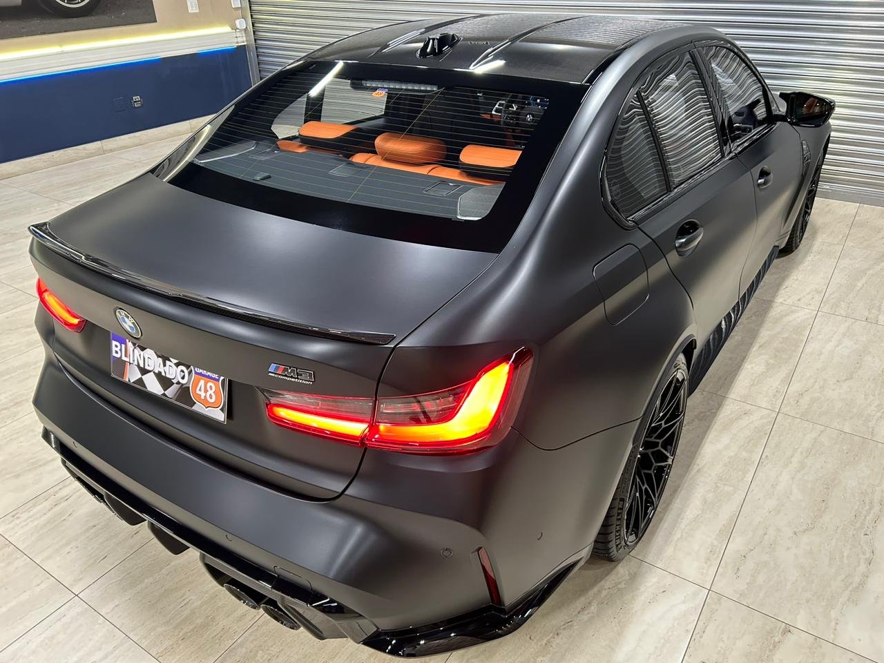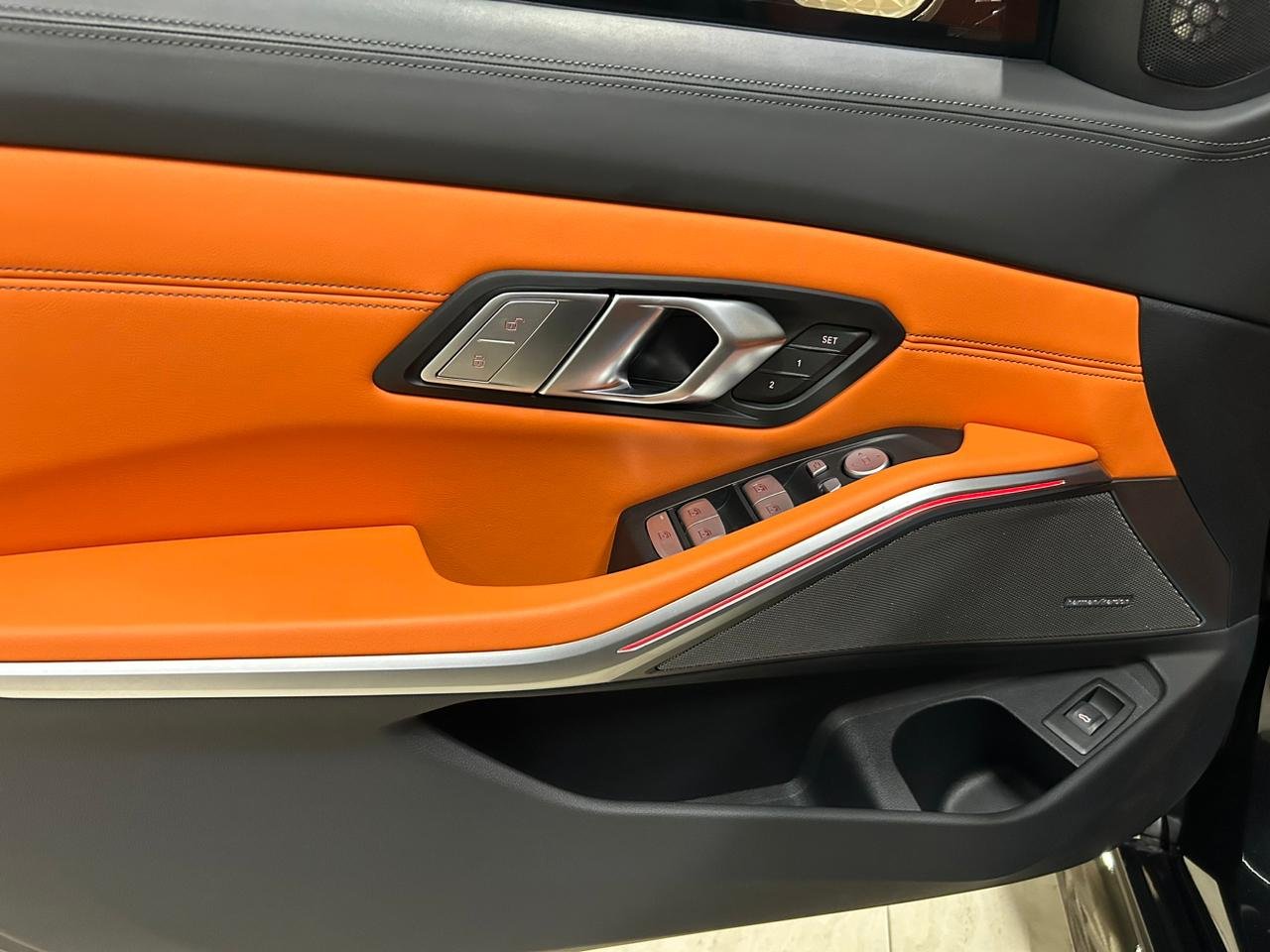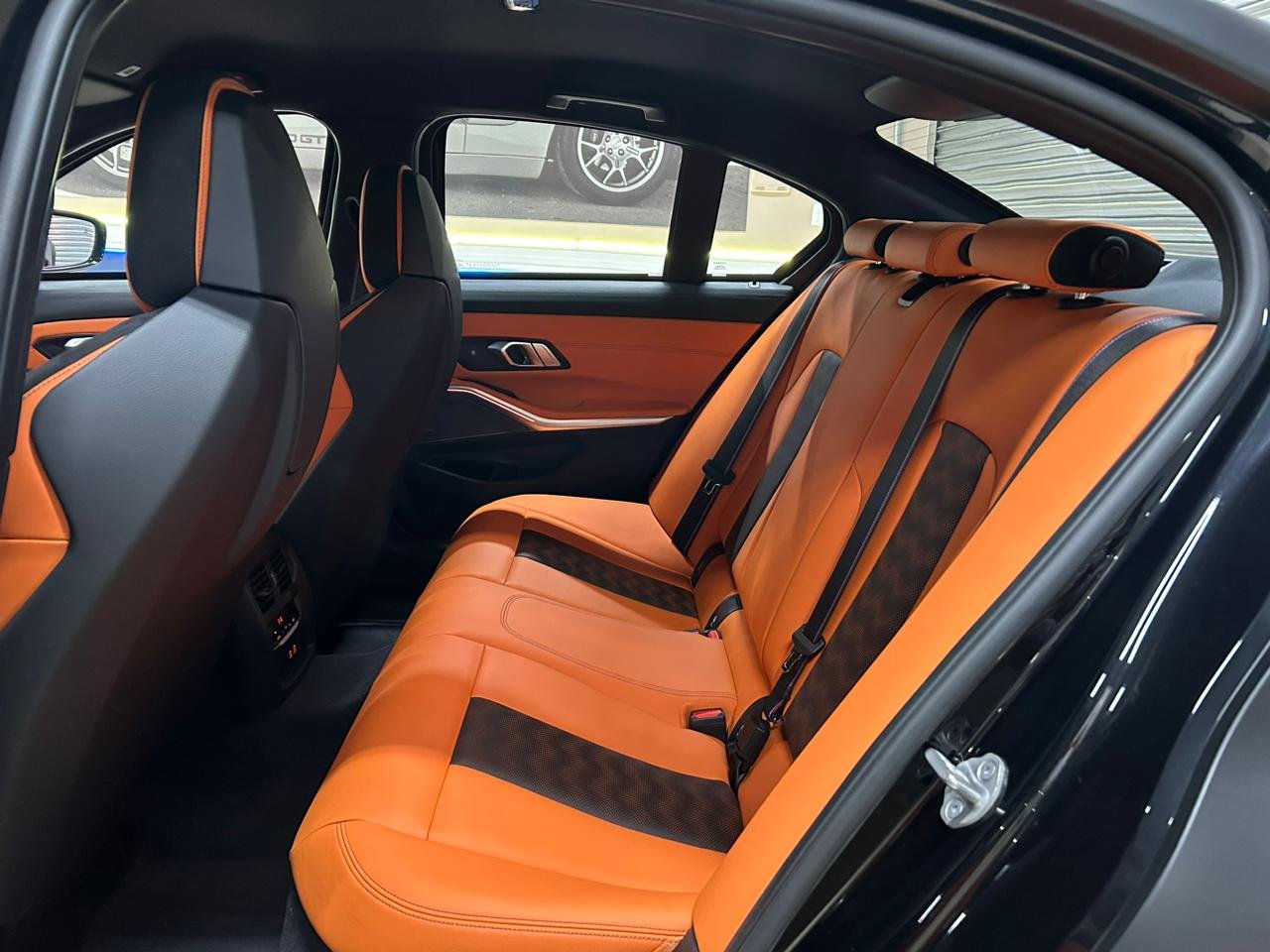 - Bancos em couro laranja e preto, dianteiros elétricos e motorista com memória com logo M3
